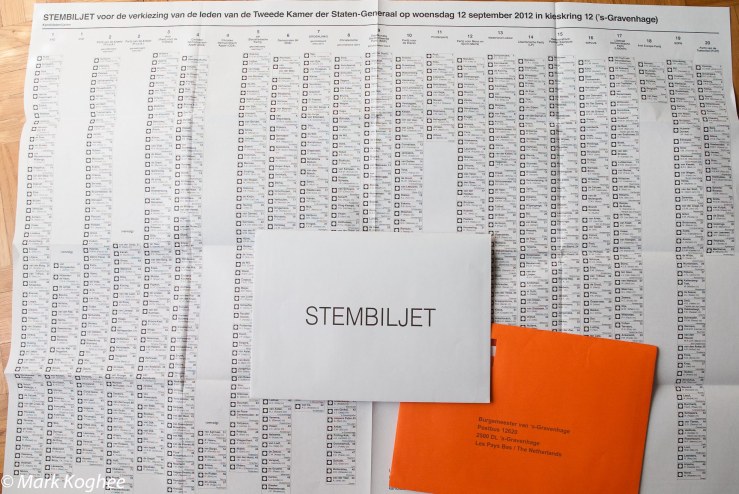 Weer post uit Nederland vandaag. Mijn stempapieren zijn binnen. Voor de verkiezingscampagne in Nederland goed en wel op gang is, kan ik mijn stem al uitbrengen. Een keuze uit 837 namen, 20 partijen. Het is aan de rechterkant van het biljet weer een bonte verzameling van, laat ik het maar houden op ‘minder kansrijke’, partijen. De SOPN, de Anti Europa Partij, Partij voor Mens en Spirt (MenS), Libertarische Partij, Partij van de Toekomst. Ik heb niet de indruk dat deze groeperingen straks hun footprint achterlaten in de parlementaire geschiedenis. Maar goed, in een land waar zelfs een Partij voor de Dieren twee zetels in het parlement haalde, moet je nooit nooit zeggen.