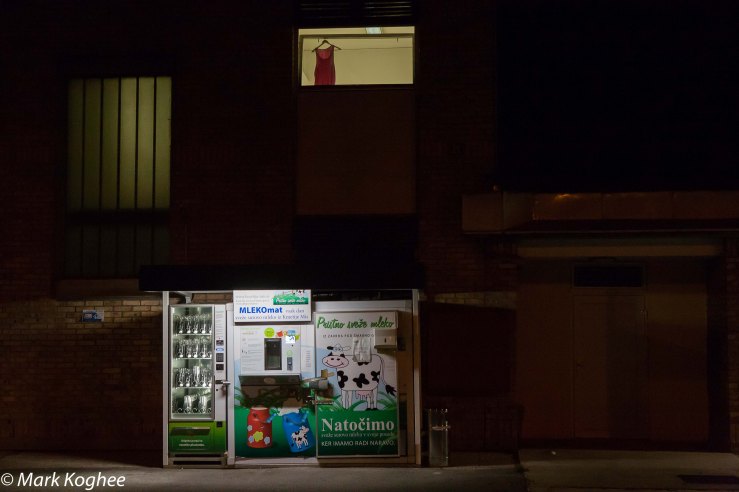 De Mlekomat is voor mij meer dan een melkmachine. Het is een symbool van het gelukkige dorp dat hoofdstad Ljubljana uitstraalt te zijn. De machines staan hier al enkele jaren en nog nooit heb ik er een met schade gezien noch bespoten met graffiti. De Mlekomat werkt. De glazenvitrines van de machines zijn altijd in tact. De machines zijn schoon. Er ligt geen vuil op, naast of in. Ik heb jeugd ze zien passeren, maar nooit zag ik iemand een baldadige vinger naar ze uitsteken.