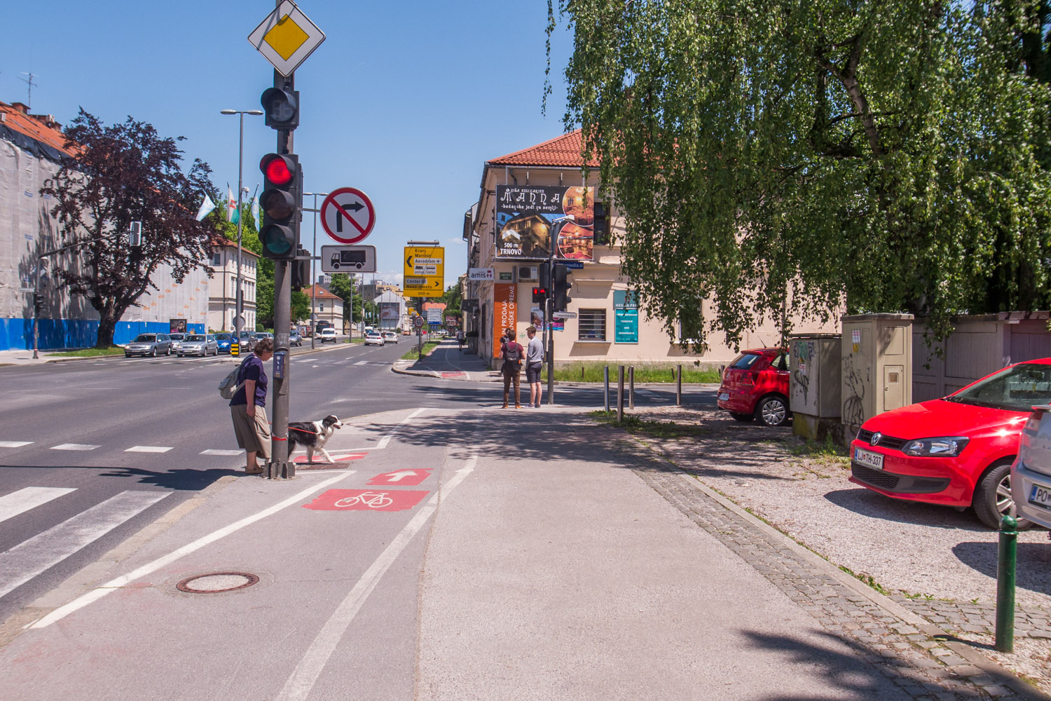 For the test I traveled from home in Vic to the Delo building along Dunajska Cesta. It’s a distance of 3 kilometres, from the western part of Ljubljana to just north of the centre. By car the journey goes almost all the way over two lane main roads past the centre of Ljubljana. By bike you ride through the centre, all the way over bike paths.